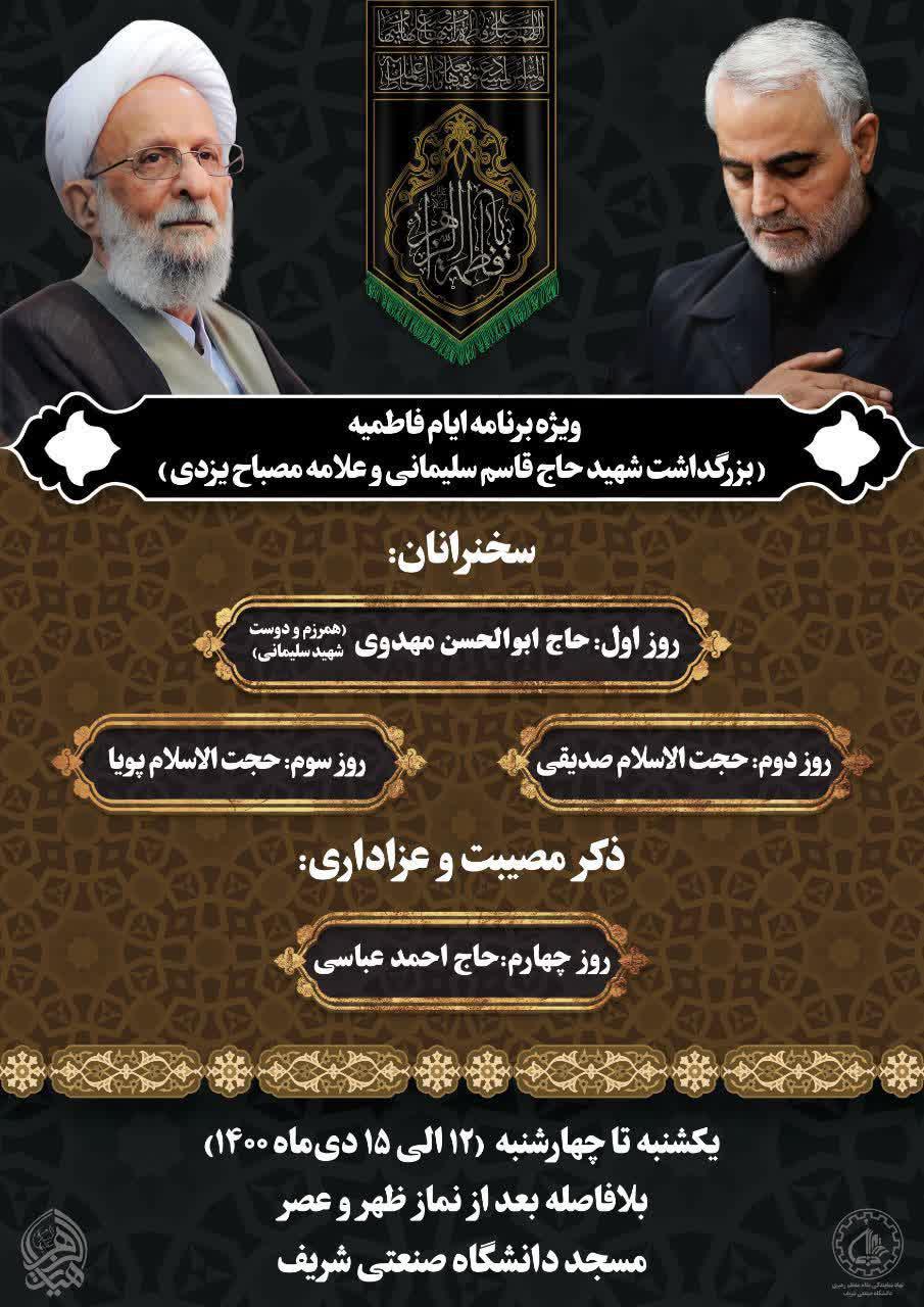 برگزاری ضیافت اولین شب جمعه ماه رجب هیئت الزهرا دانشگاه شریف برگزاری ضیافت اولین شب جمعه ماه رجب همراه با ضیافت افطار زمان: پنجشنبه 14 بهمن ماه از اذان مغرب مکان: مسجد دانشگاه شریف